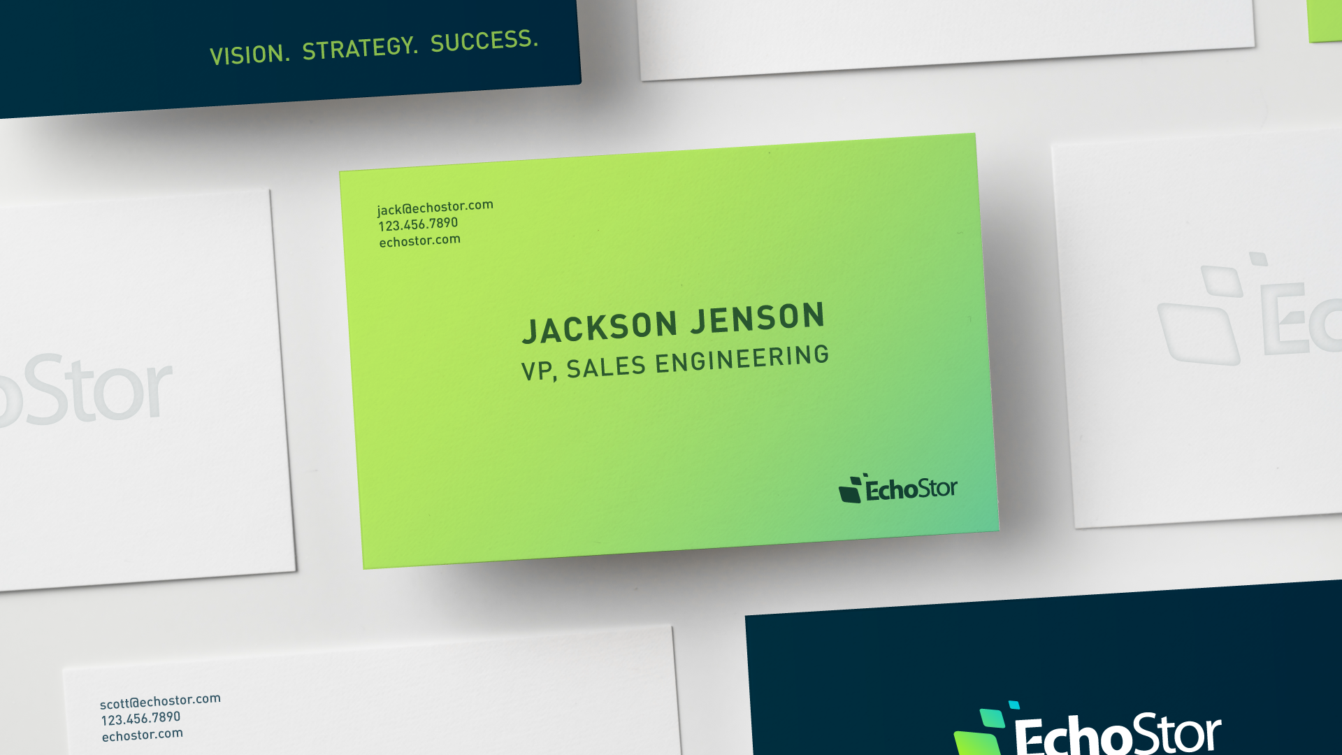 Following a rebrand four years prior, EchoStor’s visual identity had begun to feel outdated and disconnected from its current positioning. Brand guidelines and execution examples were no longer effective tools, leading to inconsistent creative output from agencies and vendors. The brand lacked a clear system to guide cohesive expression.